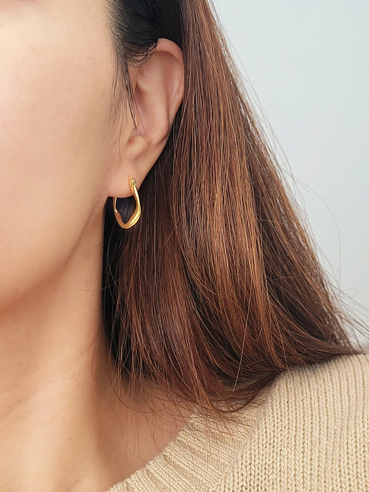 Double Chain Huggie Earrings with CZ Diamond Drop