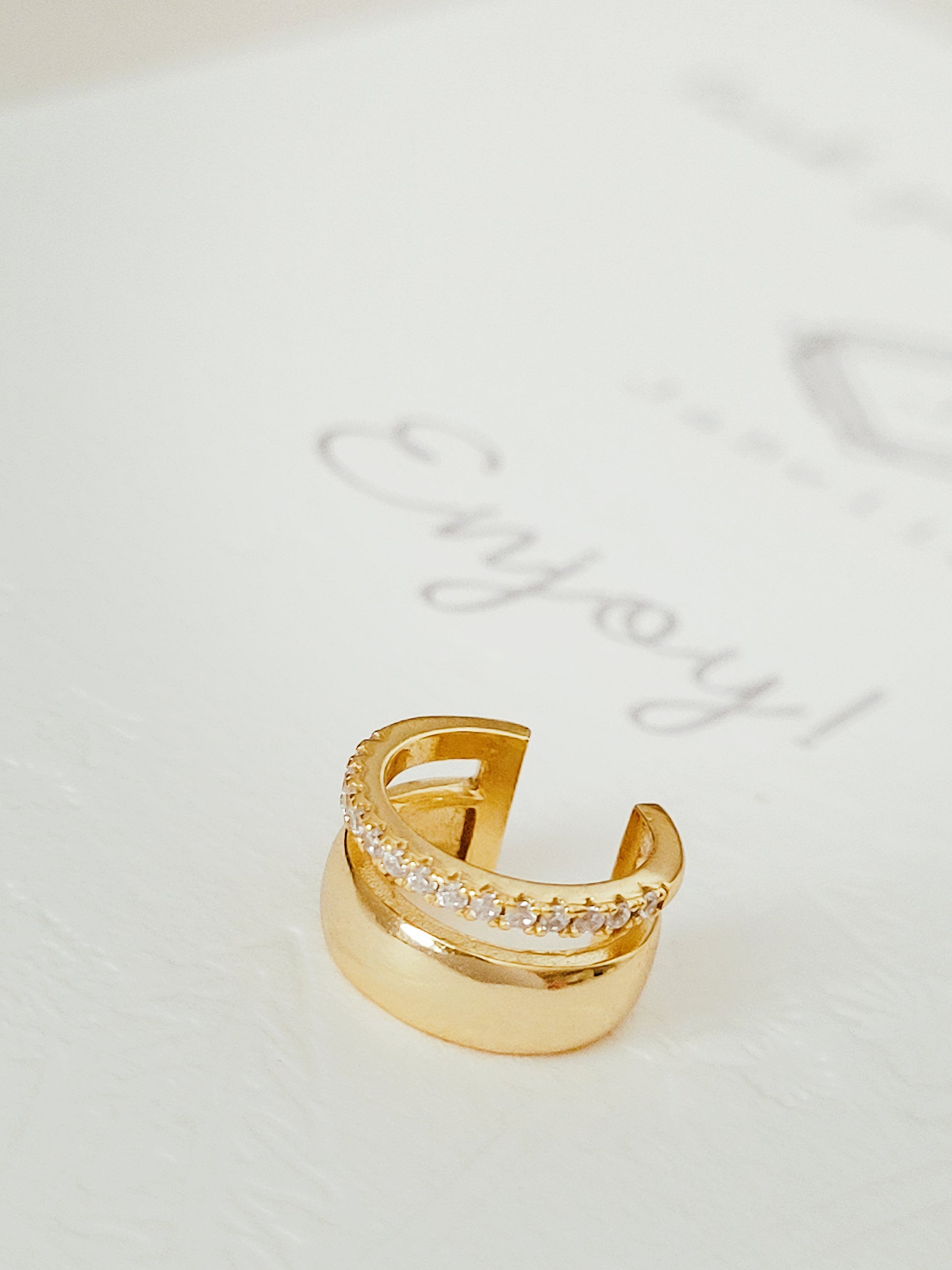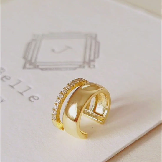 Make a statement with this gold pave celestial ear cuff, crafted in 18k gold plated sterling silver, without extra piercing.