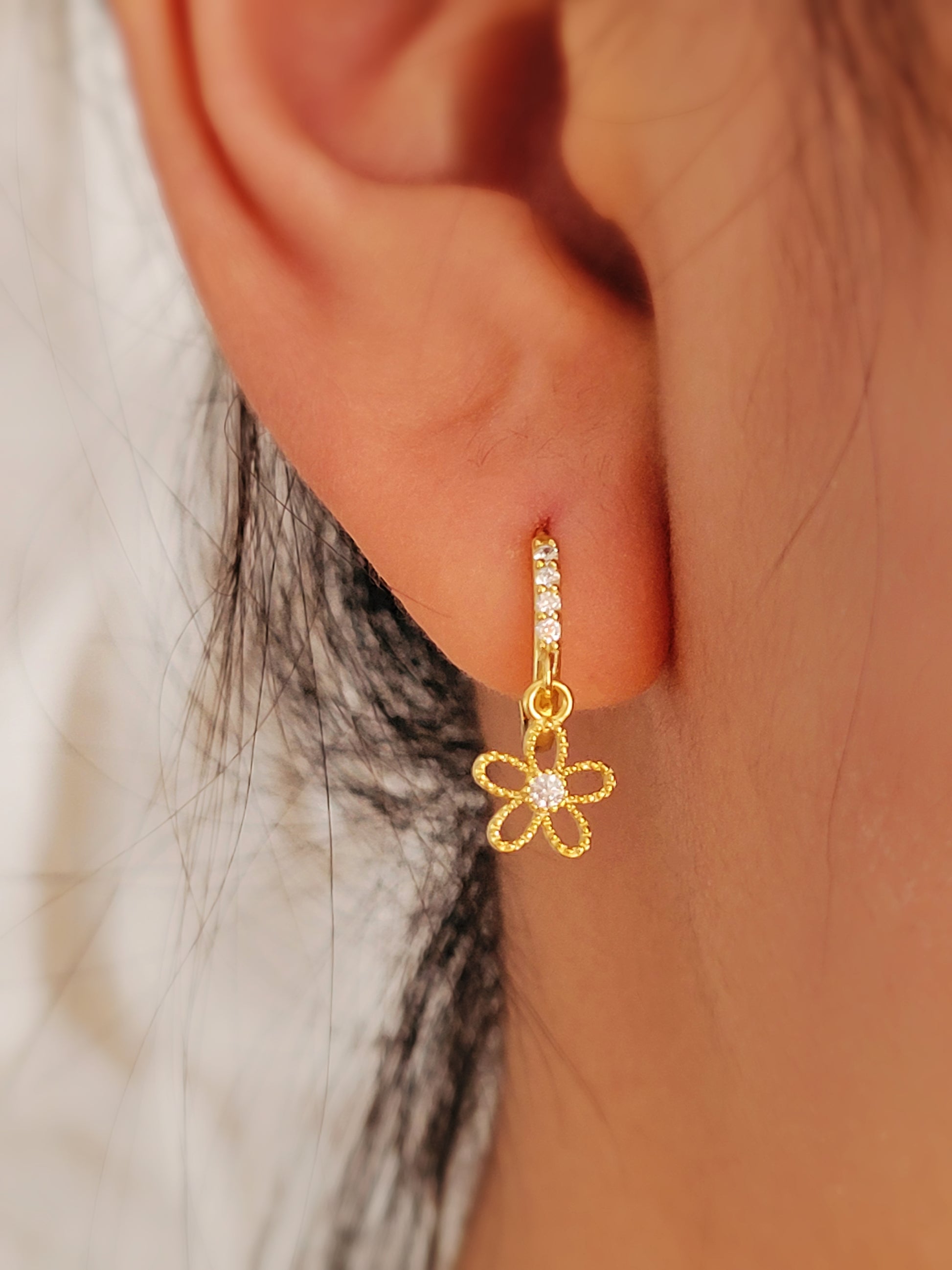 Dangly Flower Huggie Earrings