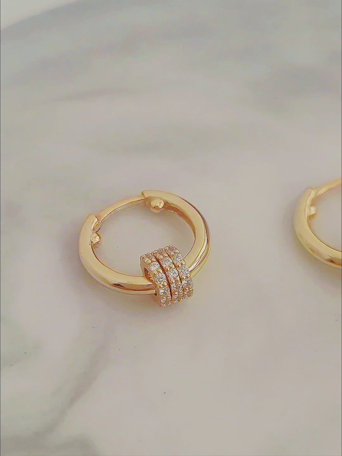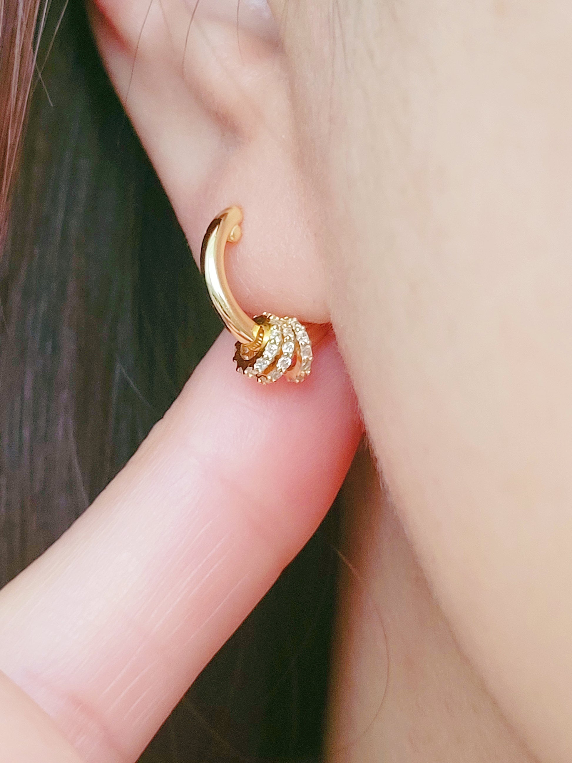 One dainty, two fantasy, three cutie. Design your hoops with the number of shimmering donuts to match your mood of the day. These delicate huggie hoops with sparkling cubic zirconia gems will add a hint of subtle elegance to your look. Make sure not to miss out on these unique gold huggies.