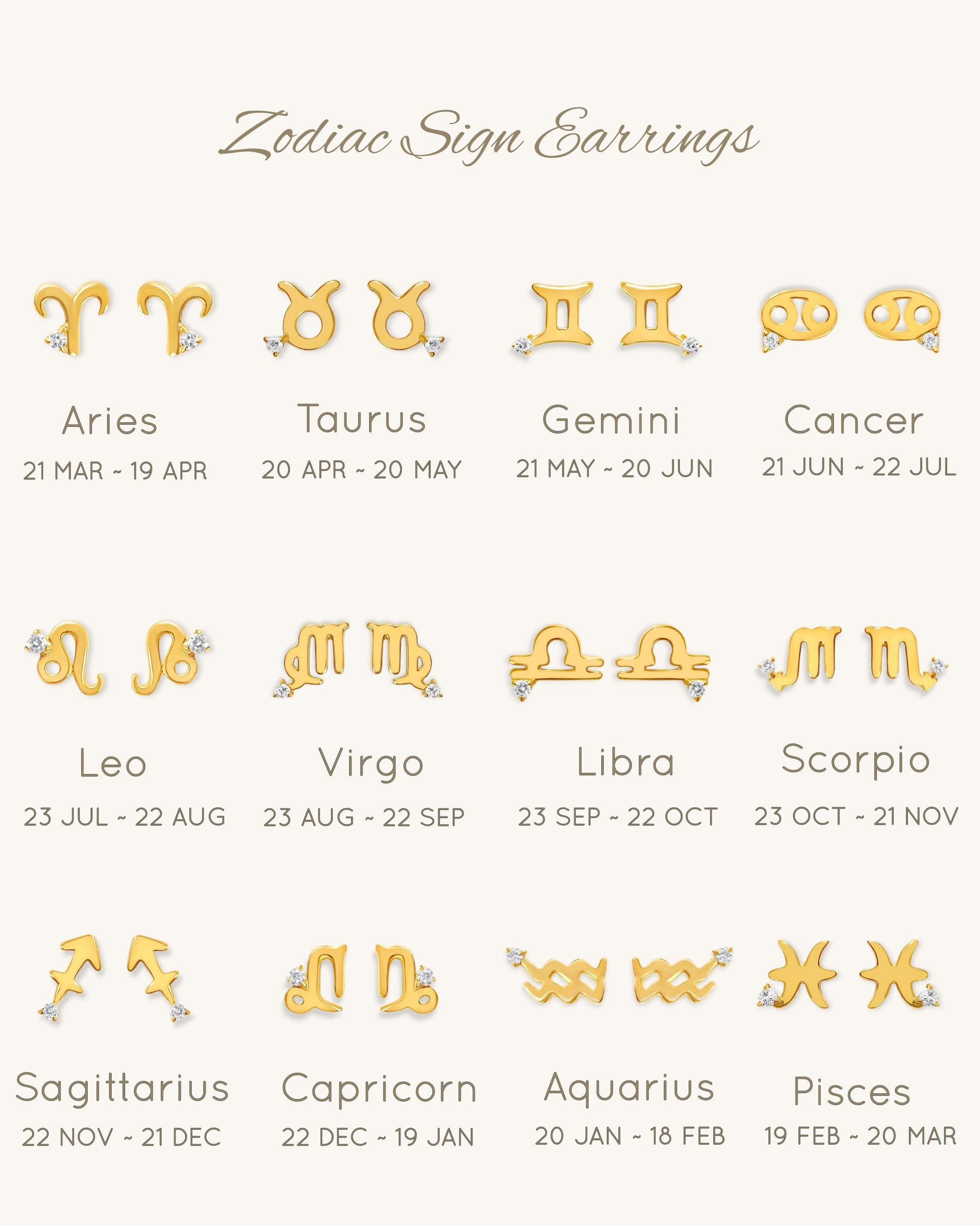 Let's get astrological. This contemporary design, featuring petite star signs and set of brilliant zirconia accent, is the only horoscope jewellery you need. Gift yourself and your loved ones for personalized feels. Created for you in 925 sterling silver with 18ct gold plating, you'll want to wear these fine earrings always and never take them off, even when swimming or in the shower.