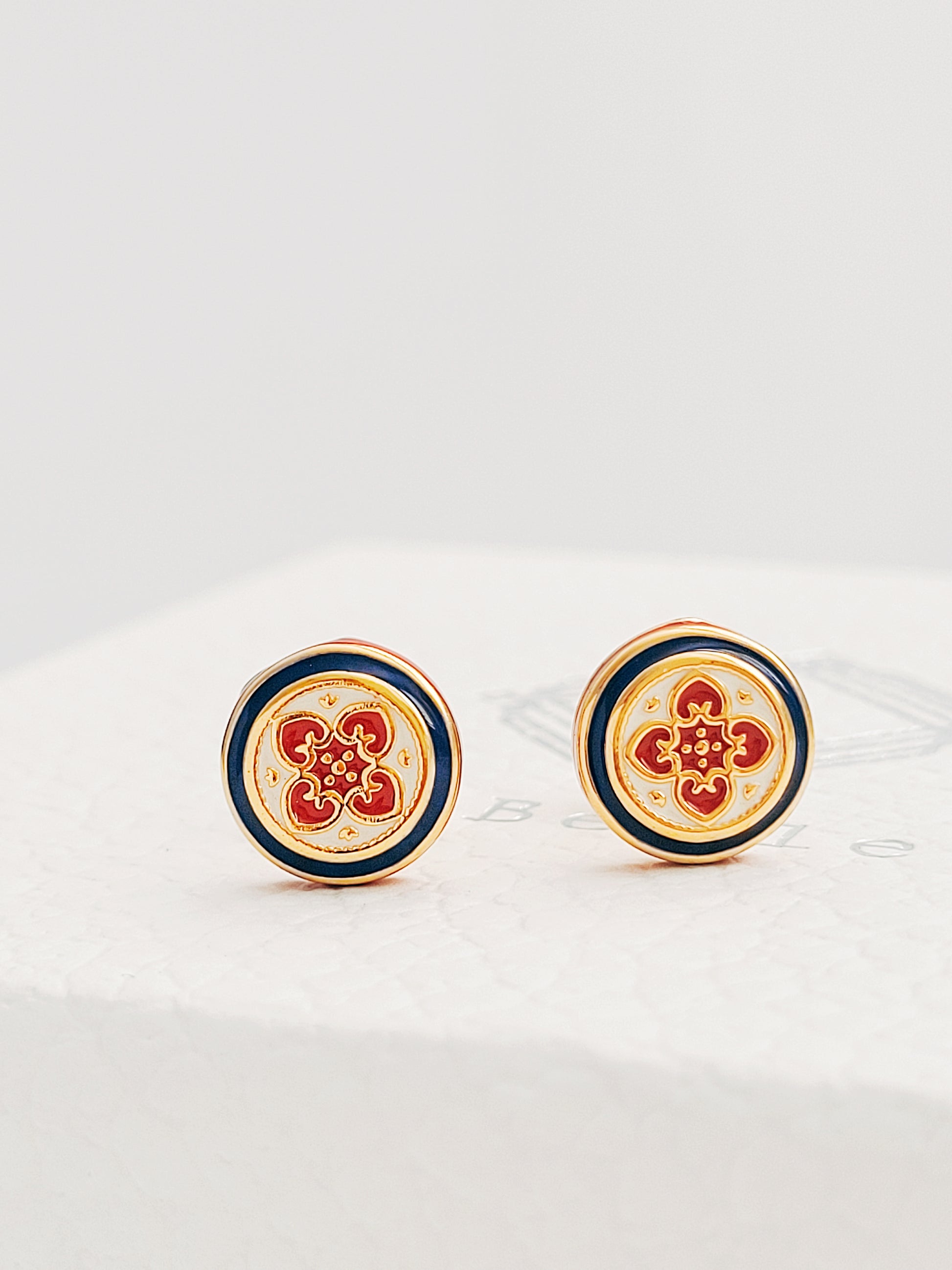 These stunning Retro Gothic Tile Pattern Enamel Stud Earrings feature intricate red and blue designs with gold detailing, inspired by classic medieval and Gothic art. Handcrafted with precision, these earrings blend vintage charm with modern elegance, making them the perfect accessory for any occasion. Lightweight and comfortable, they’re ideal for daily wear or adding a unique statement to your outfit. Whether you're looking for vintage-inspired jewelry or boho-chic accents, these earrings are a must-have for any collection