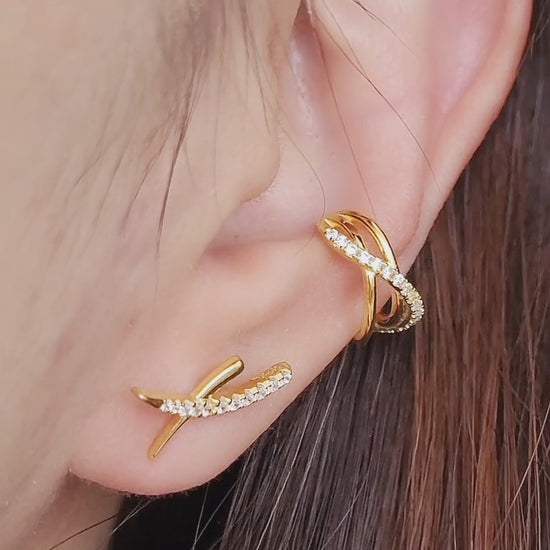 Ride the fashion wave with this Triple Pave Ear Cuff in gold, effortlessly elevate your style and elegance. This stunning ear cuff takes your stack to the next level with triple wavy lines crafted in high quality 925 sterling silver and a touch of 18ct gold plating. Say goodbye to boring and hello to beautiful with this must-have accessory. It's the perfect way to elevate your stack to the next level!